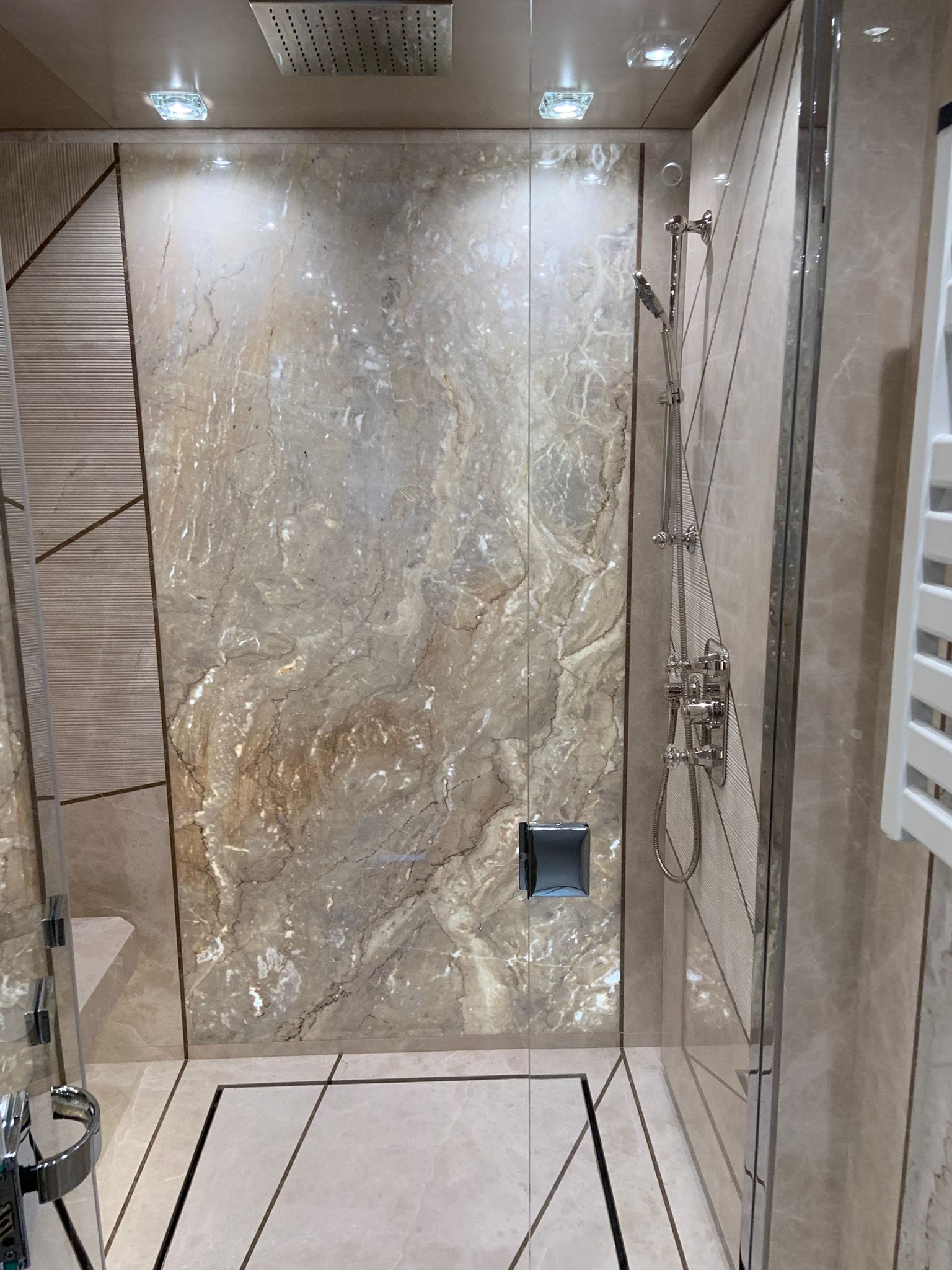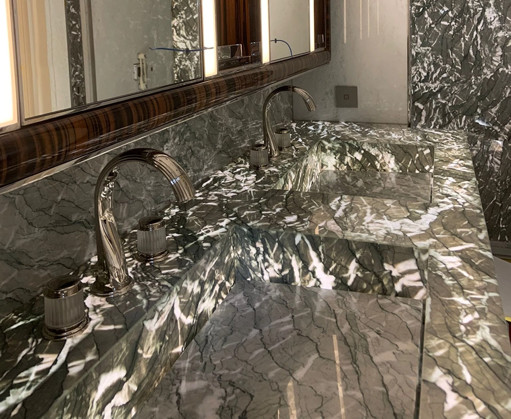 - Finiture di pregio: pietre naturali, resine, boiserie, falegnameria su misura